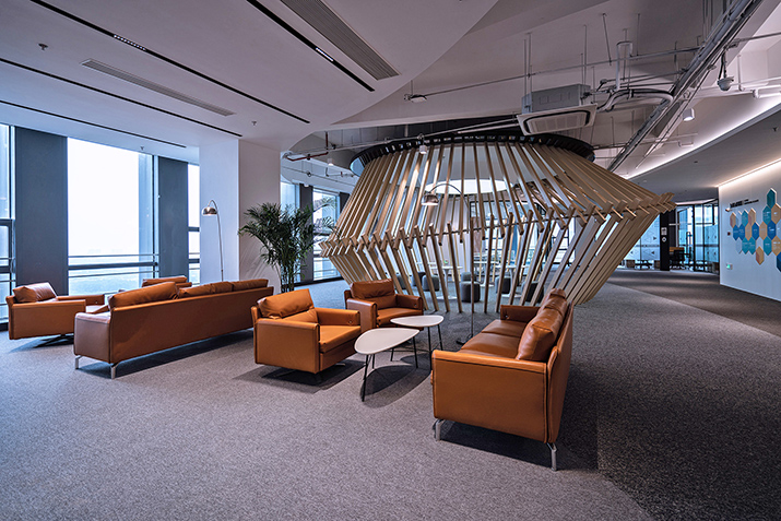 由金螳螂文化擔任設計與施工的浙江長三角人才大廈項目,位于嘉興市南湖區國際金融廣場金融大廈B座的21、22和23層,每層約1700平方米。其中21層是長三角人才項目集聚區;22層是長三角企業集聚區、高校聯合會、協會集聚區;23層是長三角人才數字展示中心、長三角人才會客廳、人才驛站、公共服務信息平臺、嘉興長三角人才發展研究院、運營公司,展廳主要分為兩個區域,功能區和展示區。