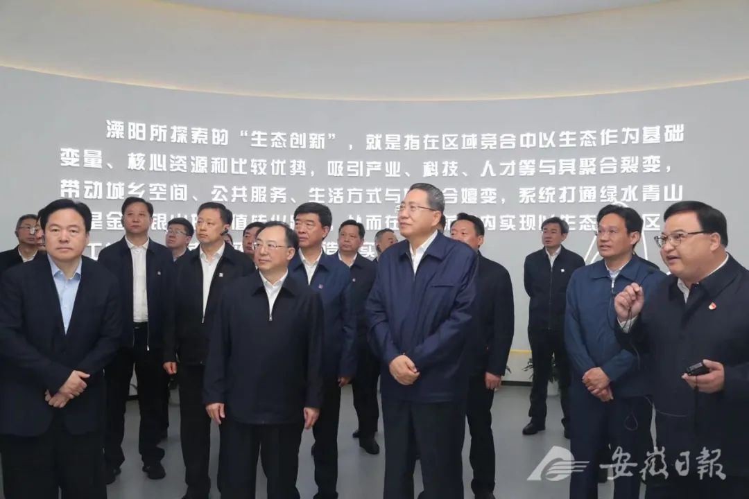 第一站是國家生態(tài)市、全國生態(tài)文明建設(shè)示范市、全國文明城市溧陽。安徽省黨政代表團(tuán)冒雨來到溧陽生態(tài)創(chuàng)新展示館,考察當(dāng)?shù)靥剿魃鷳B(tài)創(chuàng)新的經(jīng)驗(yàn)做法和蘇皖合作示范區(qū)建設(shè)情況。