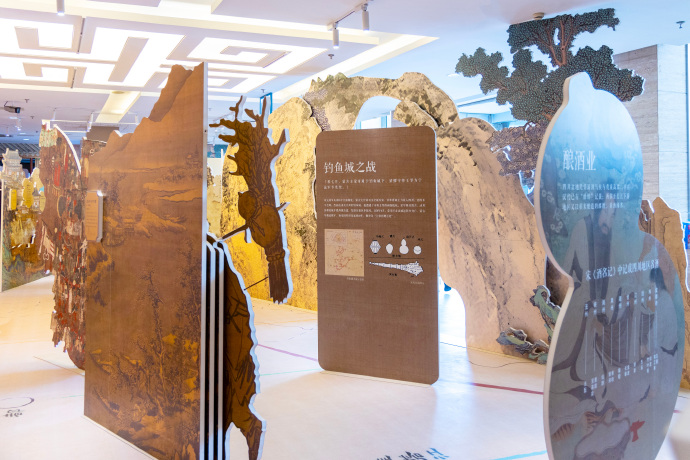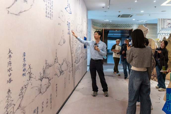 該展覽以《長江大觀全圖》、長江流域線路圖和紙質裝置三位一體的展示方式,設置“起·溯源”“承·煙火”“轉·激蕩”“合·共生”四大篇章。